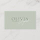 This sophisticated business card design features a calming pastel green background on both sides for a cohesive, minimalist look. The front showcases an elegant mix of modern typography and flowing script, creating a truly unique and high-end brand presentation. The back maximizes utility with a clean layout for contact details, plus space for a scannable QR code and social media icons, making it easy for customers to connect instantly.