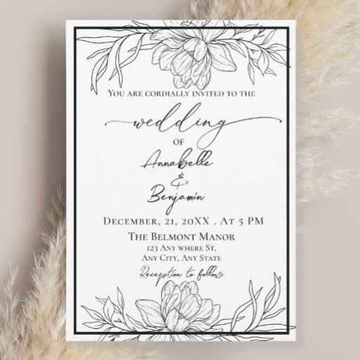 This simple modern floral design can be customized with the background color of your choice. Don't forget to customize the Bride and Groom initials in the back.
