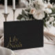 This Guest Book combines sleek design with a touch of luxury. The black backdrop contrasts beautifully with the elegant gold foil details, creating a sophisticated look. Perfect for capturing heartfelt messages from your guests, this guest book adds a refined touch to your wedding decor. Its timeless design ensures it will be a cherished keepsake for years to come, preserving memories of your special day in style.