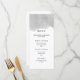 This stylish wedding menu card features a gray watercolor splash look on a white background, with modern black text.