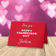 Minimalist Modern Personalized Red Valentine's Day Card for him or her with, love you HAPPY VALENTINE'S DAY Jackson, printed in fancy White