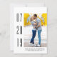 Minimalist Modern Photo Save the Date Announcement with an elegant and modern right-justified rectangle photo cutout design in white. Add a photo and your wedding details to customize. Background color on back side of invite may be changed to complement the photo or to add your wedding color.