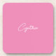 Minimalist Modern Plain Calligraphy Add Name Pink Beverage Coaster