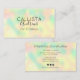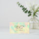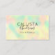 This modern, chic, elegant, and simple business card is perfect for any makeup artist, hairstylist, esthetician, aesthetician, or beauty salon. It features a minimalist and girly rainbow color scheme (yellow, green, blue, pink) holographic iridescent abstract background and includes your business information on the back. It's an excellent way to advertise and spark new business. The design includes a black handwritten signature script typography. It's elegant, cool, unique, trendy, and stylish; the perfect card to attract customers.