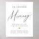 Modern script minimalist in loving memory sign in charcoal black and white with color editable heart shape, simple and elegant.