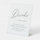 Modern script minimalist wedding signature drinks sign in charcoal black and white, simple and elegant.