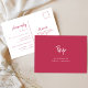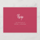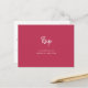 These elegant, minimalist wedding response postcards feature modern script typography and clean, sans serif text for a simple and stylish magenta red and white design you will love. There is room to add your guests options for meal choice of entrée or dinner choice. Text is kept away from the top and bottom edges of the back of the postcard, to lessen the chance of it being covered on the top and bottom by postal markings.