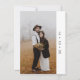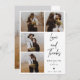 This minimalist wedding photo card features four photos on the front and one large photo on the back as well as a modern calligraphy message and tiny heart. Great for a couple looking for a simple modern wedding photo thank you card.