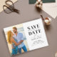 A minimalist save the date card with picture, featuring a combination of bold and script fonts for chic look, on the back a monogram and QR code for your website or registry. If you need matching pieces that are not in the collection, please let me know (Maria) Happy to help!