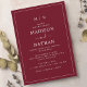 Minimalist Monogram Cranberry Red Wedding Invitation