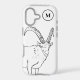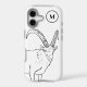 Celebrate your love of animals with this minimalist monogram phone case featuring a cute mountain goat and a custom initial. Designed in a simple black and white line drawing style, this modern, understated illustration is perfect for animal lovers who appreciate clean, timeless design.