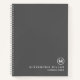 Modern notebook features a minimal design in a classic gray and white color palette. Custom name presented in the lower right-hand corner in stylish simple font with a complimentary minimal monogram medallion.