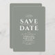 A minimalist green sage / light green save the date card with no picture and a greenery hand drawn illustration, featuring a combination of bold and script fonts for chic look, on the back a monogram and QR code for your website or registry. If you need matching pieces that are not in the collection, please let me know (Maria) Happy to help!