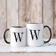 Modern farmhouse coffee mug personalized with a classic family monogram initial or other custom text. Use the design tools to add your own text and photos to create a unique one of a kind gift for newlyweds or housewarming.