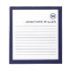 A modern minimalist lined notepad in navy blue and white. Custom monogram initial and name on a simple white background, framed by a navy blue border. Personalize using the fields provided or use the 'message' button to contact the designer for help.
