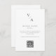 Black and White Wedding RSVP card featuring modern monogram typography and minimalist graphic design. Features scannable QR for RSVP details and guest information.