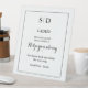 A template for a modern minimalist monogram wedding bathroom sign that can be changed and printed at home. This restroom sign has a black border and a basic initial monogram.