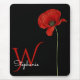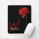 Minimalist Monogrammed Red Poppy on Black Mouse Pad