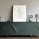 This stylish wall art features a minimalist line art illustration of a monstera leaf in green along with the inspirational quote - be still.