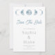 The text on the invitation is a blend of light gray block font and blue script font, creating a modern and stylish look. Whether you're a stargazer, an astronomy enthusiast, or simply love the symbolism of the moon phases, this design is perfect for you. It's a wonderful way to share your love for celestial themes with your guests and set the tone for a magical wedding celebration.