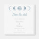 The text on the magnet is a combination of light gray block font and blue script font, creating a modern and sophisticated look. Whether you're a lover of the night sky, astronomy enthusiast, or simply appreciate the beauty of the moon phases, this design is perfect for you. It's a great way to share your passion for celestial themes with your guests and create excitement for your upcoming wedding.