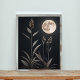 This captivating artwork captures the serene beauty of a moonlit night. The delicate silhouette of tall grasses stands in stark contrast to the bright, full moon casting its gentle light. This minimalist design evokes a sense of tranquility and peace, making it the perfect addition to any home or office.