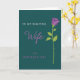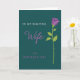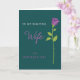 This greeting card features a calm deep teal background that sets a quiet, romantic mood. On the right side, a tall, slender rose rises vertically, with violet petals detailed by fine inner lines that suggest soft folds like a gentle embrace ❤️. Its lime-green stem runs downward with simple leaves and tiny pointed thorns, adding a natural touch without crowding the layout. On the left, the words “TO MY BEAUTIFUL” sit near the upper area in white capital letters with a straightforward, modern look. Just below, “Wife” appears larger in a flowing fuchsia lettering style, like a tender note written for someone close. Beneath that, “ON MOTHER’S DAY” is placed in a lighter purple set of capital letters, balancing the message and leaving airy space around it 🌼. The final look shows the violet rose on the right against teal, with the three lines of text stacked neatly on the left.