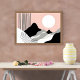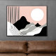 This minimalist abstract artwork features rolling mountains in shades of black and white, set against a soft pink backdrop. A large white circle represents the rising sun, adding a touch of warmth and serenity to the scene. The clean lines and simple shapes create a modern and elegant aesthetic that will complement any interior space.