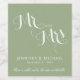 Minimalist sage green labels feature Mr and Mrs in a white script typography.