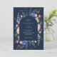 Minimalist Navy Blue Boho Wildflower Wedding Invitation
