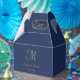 Minimalist Navy Blue Monogram Script Wedding Favor Boxes