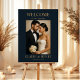 Welcome your guests with timeless style using this minimalist navy blue modern wedding welcome foam board featuring your favorite photo. The clean layout, elegant typography, and rich navy background create a sophisticated, contemporary design. Personalize easily with your names, date, and venue details. Professionally printed on durable foam board — perfect for greeting guests at your ceremony or reception entrance.
