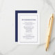 This simple, minimalist design features the text in navy blue copperplate and italic type, framed by a thin navy blue line on a white background. The reverse is solid navy blue.