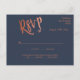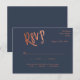 Create a personalized and splendid, chic, and elegant RSVP insert card for your wedding reception, banquet, or party event. This enclosure insert card features features spacious and beautiful calligraphy script writing in faux rose gold foil letting and with a navy background.. You can easily customize it with your own text and customize it to your liking. Please note: "RSVP -by- " and graphic artwork cannot be edited. Additional Note: The gold foil print is a faux rose gold foil effect. It is NOT the actual hot stamping rose gold foil.