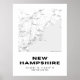This minimalist New Hampshire map art showcases a black and white design with coordinates, celebrating the Granite State in a modern style. Perfect for home or office decor, this artwork brings New Hampshire’s charm with a sleek and elegant look.