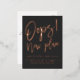 Oops! New plan, Modern fun casual script wedding change the date with a hand written style typography in real rose gold foil, with simple and minimalist dark gray off black to announce the postponement of your wedding and new plans
