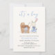 Minimalist Nursery Stroller Rabbit Boy Baby Shower Invitation