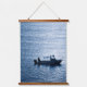 A striking minimalist composition featuring a lone fisherman surrounded by deep blue water. The balance of negative space and rich tones creates a calm and contemplative atmosphere, making this piece ideal for modern interiors, coastal decor, and serene living spaces.