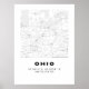 This minimalist Ohio map design features a modern black and white look with precise coordinates, celebrating the Buckeye State in a stylish way. Perfect for any decor, this piece brings a touch of Ohio’s unique character.