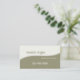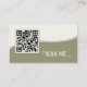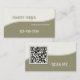 Business card featuring a simple design in olive green and soft off-white colors. On the back is your customized QR code.