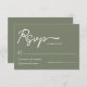 This minimalist olive green wedding RSVP card features a modern elegant layout with clean script typography and a timeless, natural color palette. Perfect for rustic, greenery, or classic wedding themes. Fully customizable, making it easy for guests to confirm attendance. Ideal for couples looking for simple, stylish, and coordinated stationery to match their wedding invitation suite.