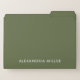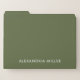 Keep your important documents organized and stylish with this minimalist olive monogram file folder. The design features your name in a stylish font in the lower thirds, centered white font on an olive green background. The high-quality material ensures durability and protection for your documents. Customize the text to make it truly your own. Perfect for home, school, or office use.