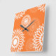 Minimalist Orange Mandala Geometric Floral Pattern Square Wall Clock