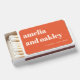 Minimalist Orange Retro Custom Wedding Names Matchboxes