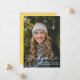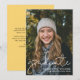 Modern Script Overlay 2024 Graduate Photo Announcement Card with room for additional details/information on the back. Back is marigold yellow with black script