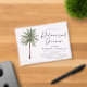 Tropical wedding rehearsal dinner invitations featuring a single palm tree illustration displayed on the left side of the design contrasting with an acrylic background. Personalize the palm tree rehearsal dinner invites with your names and rehearsal dinner details in black lettering with a modern hand-lettered script accenting the design. Designed to coordinate with our Minimal Palm Tree wedding collection.