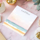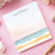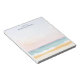 Escape to a tranquil seaside with this minimalist, personalized notepad. The design features an abstract representation of a beach scene, with soft pastel waves and sand rendered in simple, clean lines. The calming color palette evokes a sense of peace and relaxation. Add your custom text for a unique touch. Perfect for jotting down notes, reminders, or dreams of the ocean.