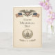 This refined Memorial Day design embraces restraint and solemn dignity through a minimalist, historic print aesthetic. At the top, a classic American eagle with shield spreads its wings between early-era American flags, rendered in a subdued, engraving-inspired style. The centered typography “Happy Memorial Day” is clean and formal, allowing the message to stand quietly on its own. Below, a circular medallion features a battlefield cross–inspired emblem with crossed rifles, a helmet, and an eternal flame, encircled by laurel branches symbolizing honor, remembrance, and sacrifice. Soft parchment tones, fine linework, and generous negative space give the piece a timeless, ceremonial quality appropriate for respectful observance and reflection.