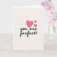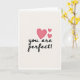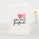 This card shows the message “you are perfect!” in smooth, flowing black lettering across the center of a creamy off-white background. Just above and a little to the right of the words, three pink hearts float together in different sizes. The hearts have gentle shading, so they look softly rounded instead of flat. The simple layout keeps your eyes on the message first, and then on the hearts as a sweet follow-up. It feels meaningful because it says something direct and kind, the sort of thing many people want to hear from someone they love or care about ❤️. The exclamation point adds a little extra warmth, like you’re saying it with a smile 🥰. It’s an easy card to give when you want to say “I see you, and you matter,” and share Valentine’s Day feelings with someone special.