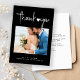 Minimalist photo modern script black wedding thank you card